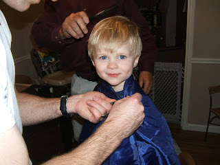 Here are three generations of Prescott men united in the pursuit of a proper haircut. (Well, maybe only two of them are actually united in that pursuit…)